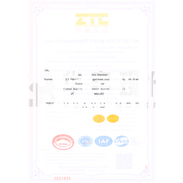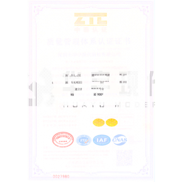 ISO9001認證證書